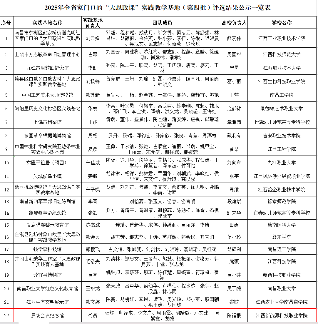 根據江西省教育廳官網公布的消息,根據《關于開展全省“大思政課”建設綜合改革試驗區改革項目申報的通知》工作安排,經高校推薦、省教育廳初核、專家評審,由我校申報的新余市羅坊紀念館被確定為全省第四批家門口的“大思政課...